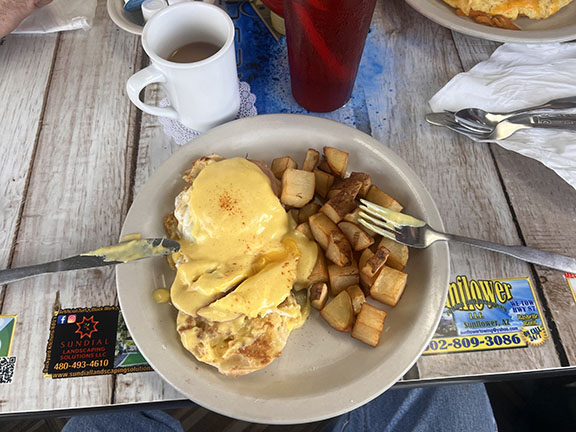 Of course, thanks to Mad Coyote Joe, I tried the special eggs benedict, not on the menu and available only on the weekend if you know to ask for it.